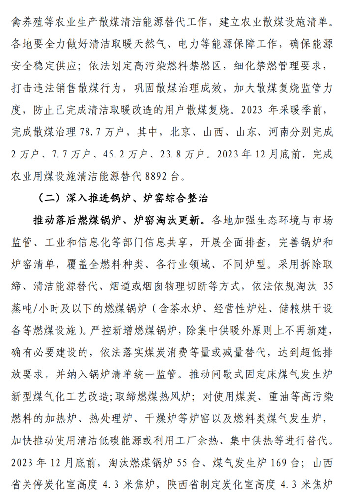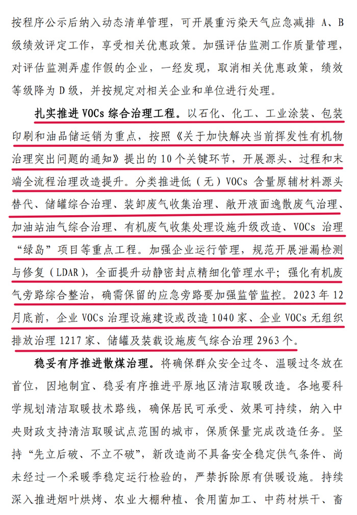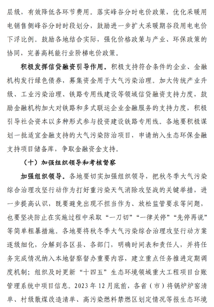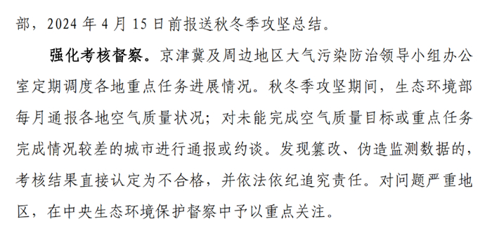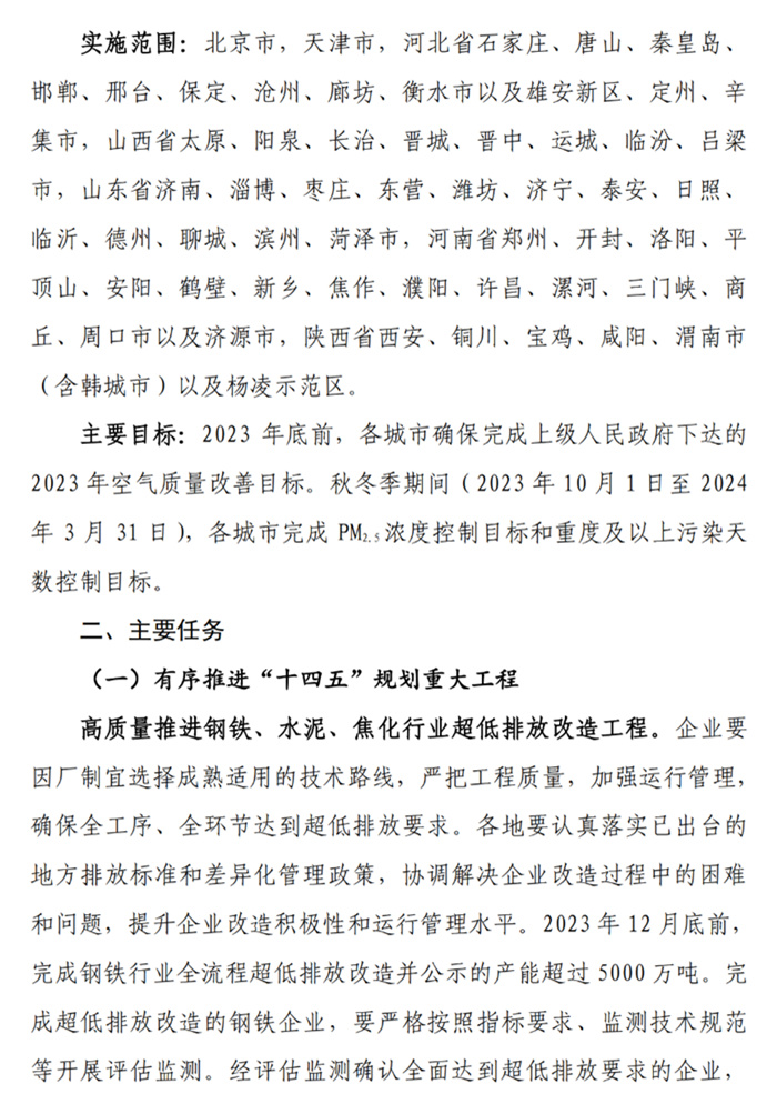 2023年底前,各城市確保完成上級人民政府下達的2023年空氣質量改善目標。秋冬季期間(2023年10月1日至2024年3月31日),各城市完成PM2.5濃度控制目標和重度及以上污染天數控制目標。